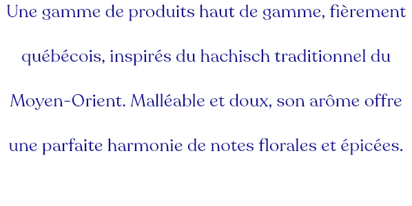 A premium line of proudly Quebecois hashish inspired by traditional Middle Eastern traditions. Malleable and smooth with an aroma that marries floral and spicy notes in perfect harmony.